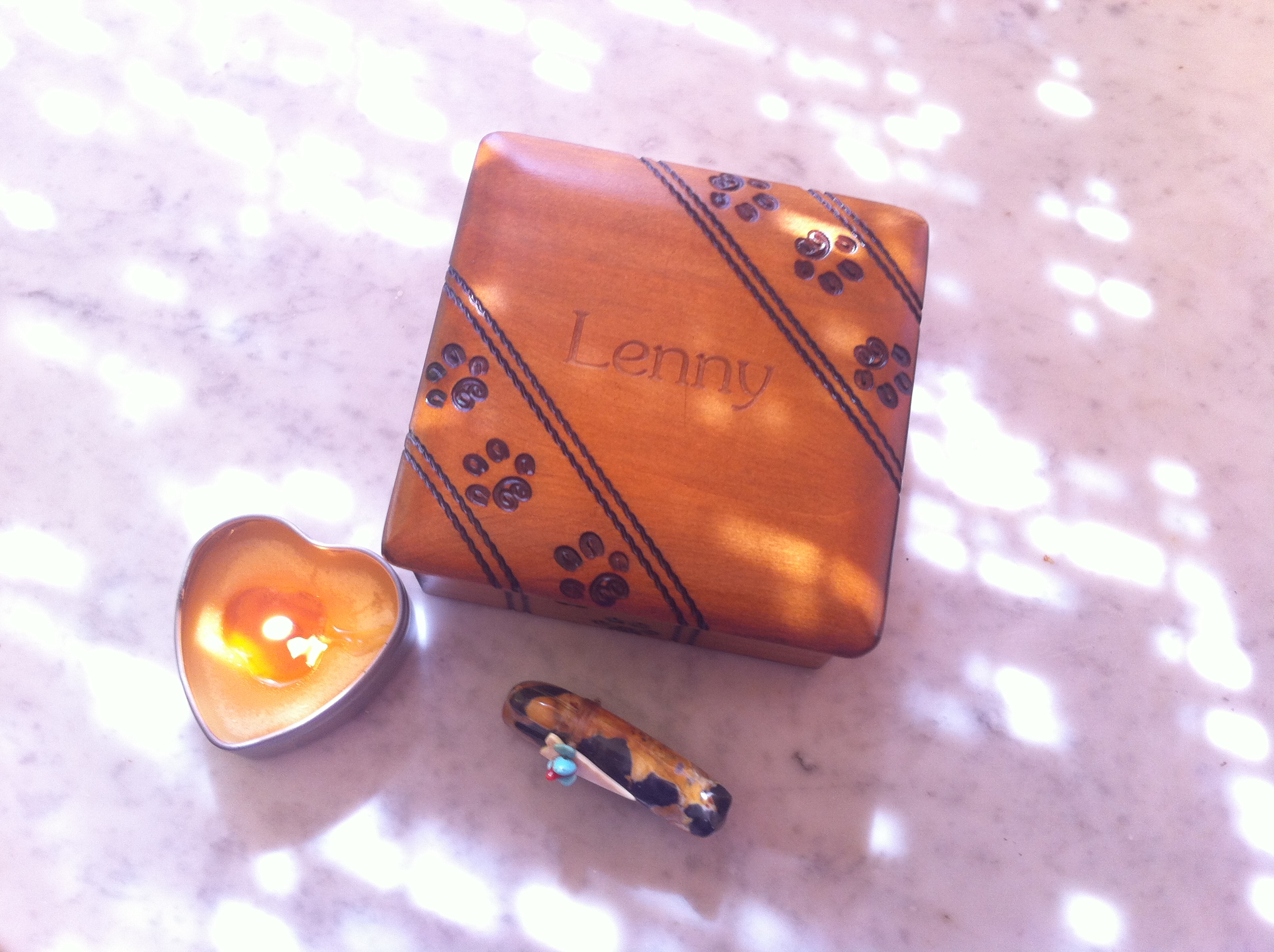 I called up the sense memories of Lenny: his weight on my chest when he sat on me, the hardness of his head as he butted me in the chin with it, the softness of his fur, his warmth, the smell of his paws. I was grateful that this creature had given me his love. I knew it was real, and my sadness — also real! — went away for a bit.